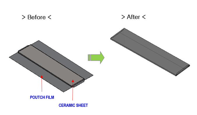 장비설명 Poutch film에 Ceramic pad를 자동으로 포장하는 장비